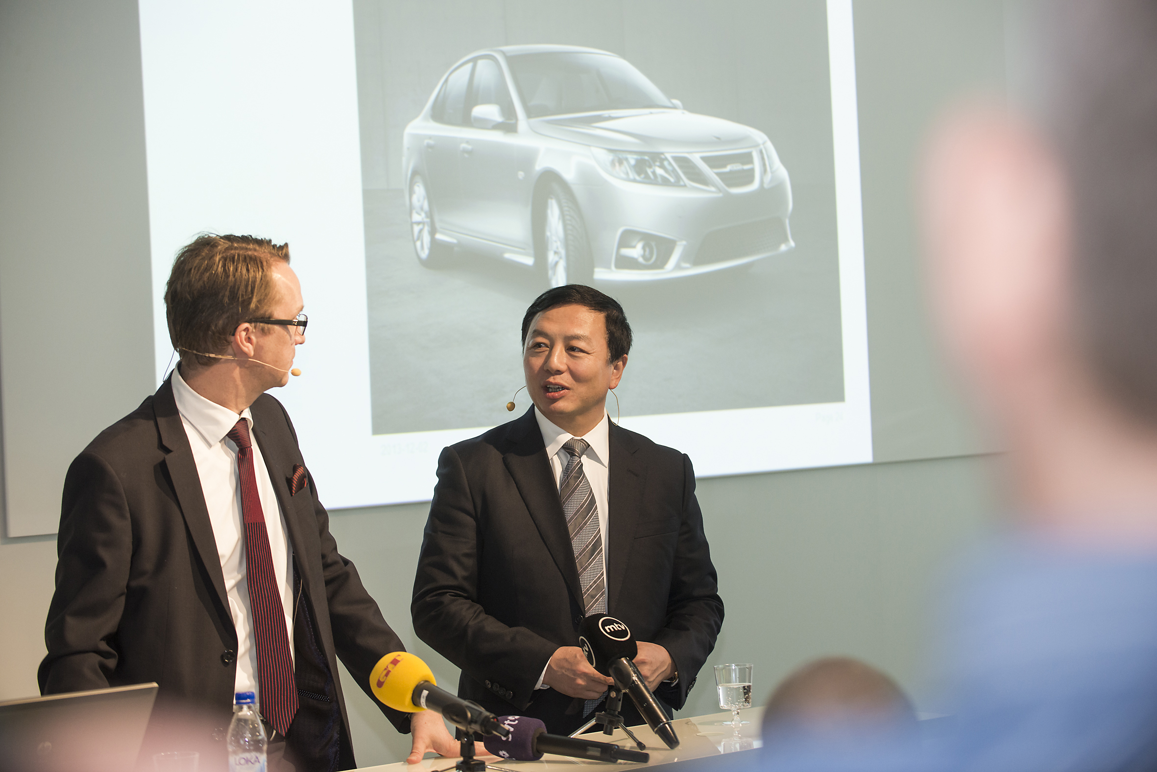 Den nya Saab 9-3 Aero Sedan, presenteras av chefen för produktplanering, Frank Smit Foto: Nevs